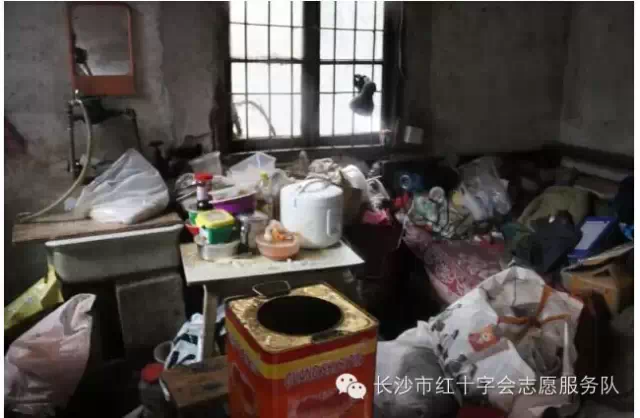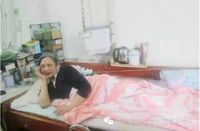 爱心第二站:贺美湘阿姨66岁,住址:车站中路30号五栋303号;在文革时被迫害导致高位截瘫,独居,无收入,无子女,生活完全不能自理,靠低保、同学的帮助维持生活。上午社区请的大姐做好一天的饭做好卫生,下午到晚上贺阿姨孤独的床上度过一天又一天、一年又一年、异常艰辛的不仅仅是身体上痛苦,心灵上的创伤一辈子也不能抹平;贺阿姨十分健谈不难看出年轻时精明能干,屋子一角的书柜里整整齐齐摆满了书;有人陪她聊天让阿姨十分愉快,还说担心我们会不会因为大雨而不来看她!当年的动荡已成往事,21世纪和谐社会一切都会变得美好!