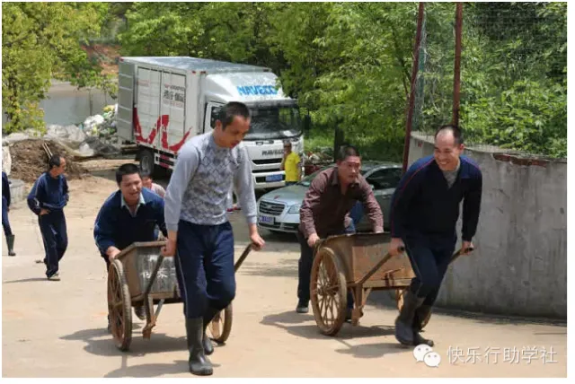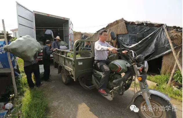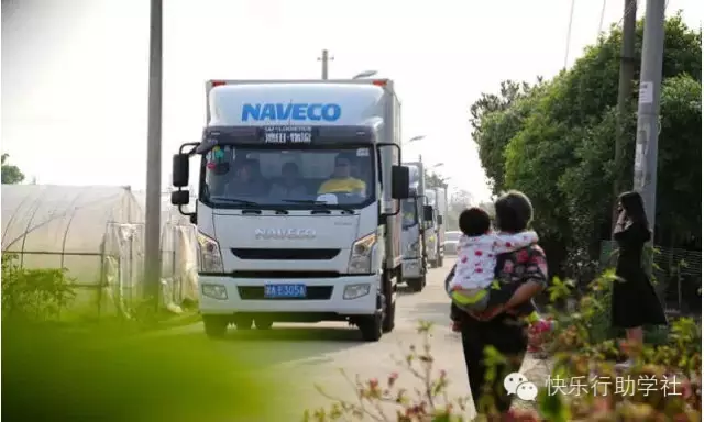 一支爱心运输车队缓缓开进乡间农场