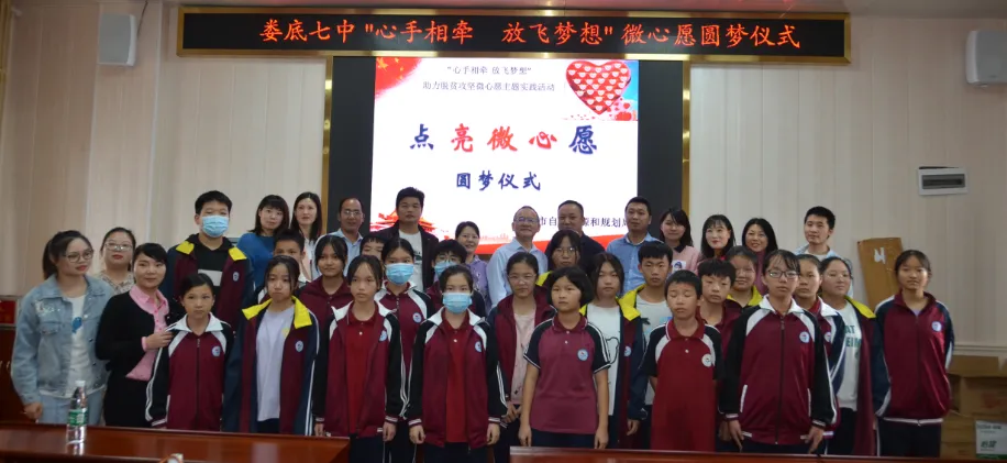 凝聚微力量,情暖微心愿。9月18日上午,娄底市自然资源和规划局党组成员成永胜带领十多名志愿者代表前往娄底七中,开展“点亮微心愿·争做圆梦人”助力脱贫攻坚志愿服务活动。此次活动我局集体认领微心愿18个,为留守和建档立卡贫困学生送去图书、书包、书柜、衣服等4000多元学习和生活用品。